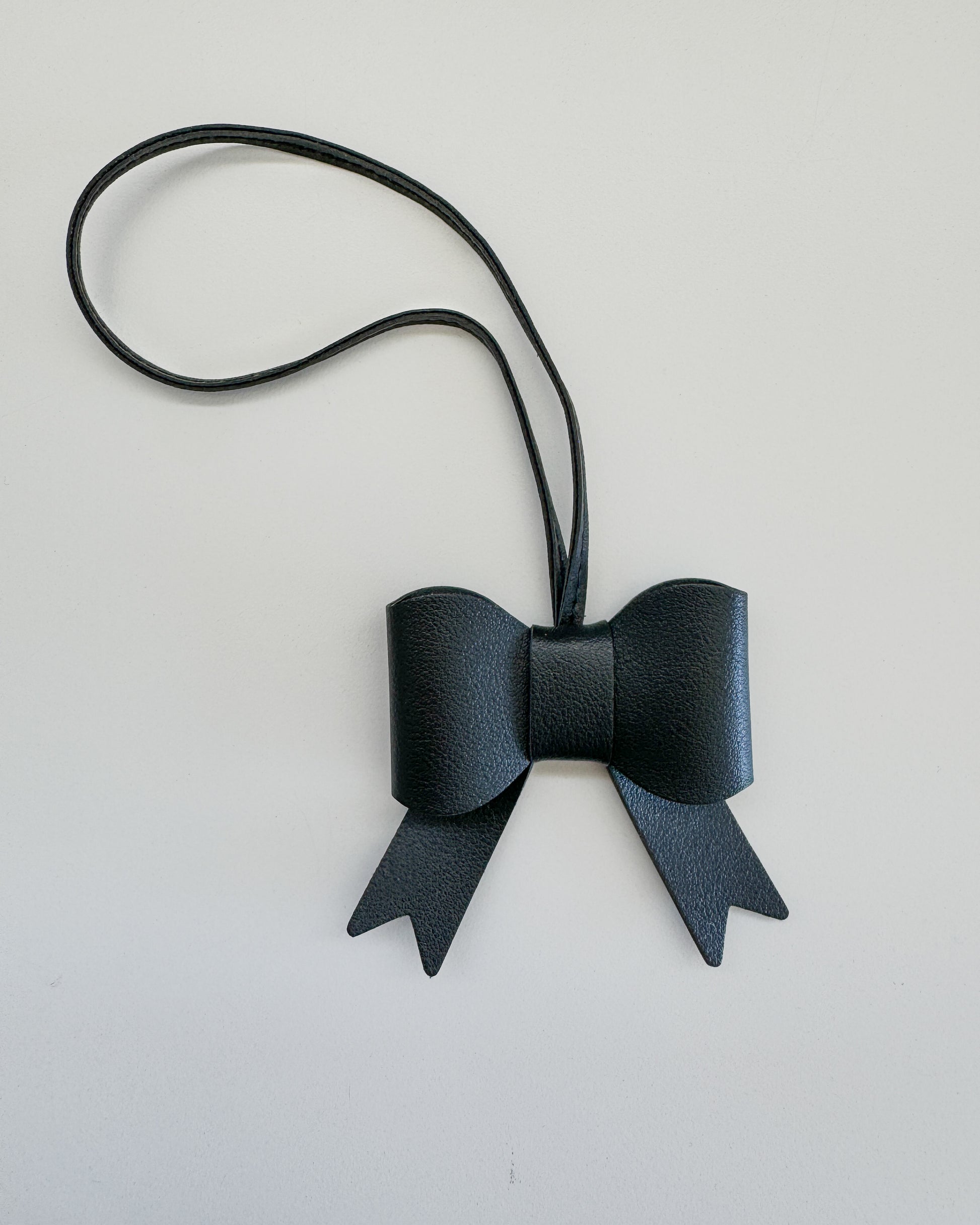 Our chic black bow charm is faux leather and the cutest bag accessory. Think of it as a subtle statement piece; small in scale, big on impact.